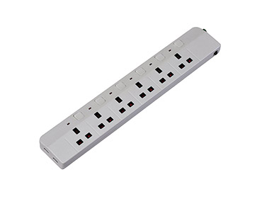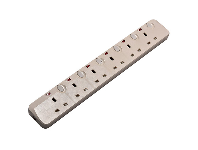 型號:UK1906SL 名稱:英式排插 規格:六位英式排插 功率:13A 250V~ 3250W 面板材料:ABS/PC 五金材料:純銅 包裝:20個/箱
