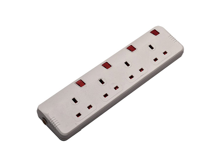 型號:UK4104S 名稱:英式排插 規格:四位英式排插 功率:13A 250V~ 3250W 面板材料:ABS/PC 五金材料:純銅 包裝:24個/箱
