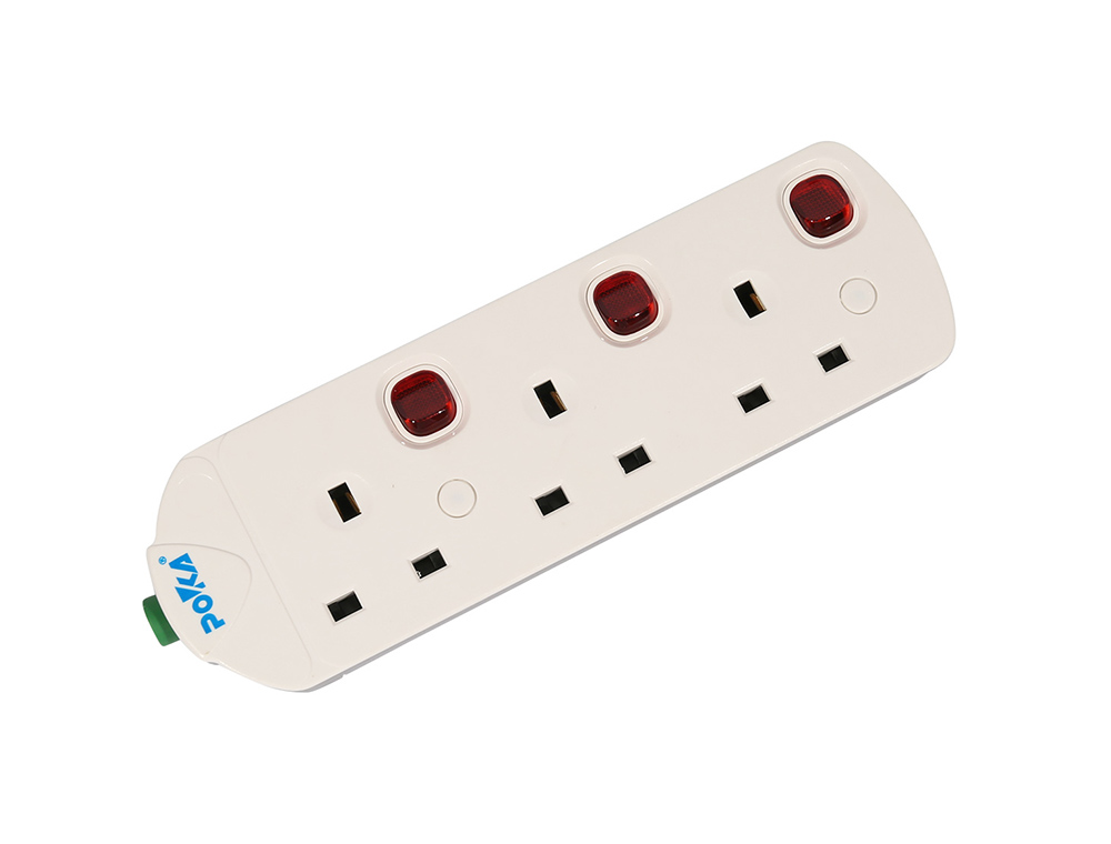 型號:UK903S 名稱:英式排插 規格:三位英式排插 功率:13A 250V~ 3250W 面板材料:ABS/PC 五金材料:純銅 包裝:24個/箱